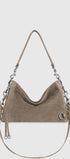 The M.A.B. Crossbody is carefully crafted from suede leather and finished with shiny silver hardware. This style is slightly larger than the OG M.A.B. and features both a detachable crossbody strap and a detachable shoulder strap.
