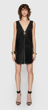 The Adrian Dress will have all eyes on you. Crafted from luxurious leather, this sleek design features a deep V-neckline that adds a touch of allure, along with front pockets and a bold zipper front.